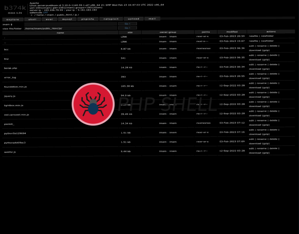 - Accessing the Shell: Open your web browser and navigate to the URL where you uploaded the B374k Mini PHP Shell. This usually involves entering the server’s IP address or domain name followed by the shell file name.